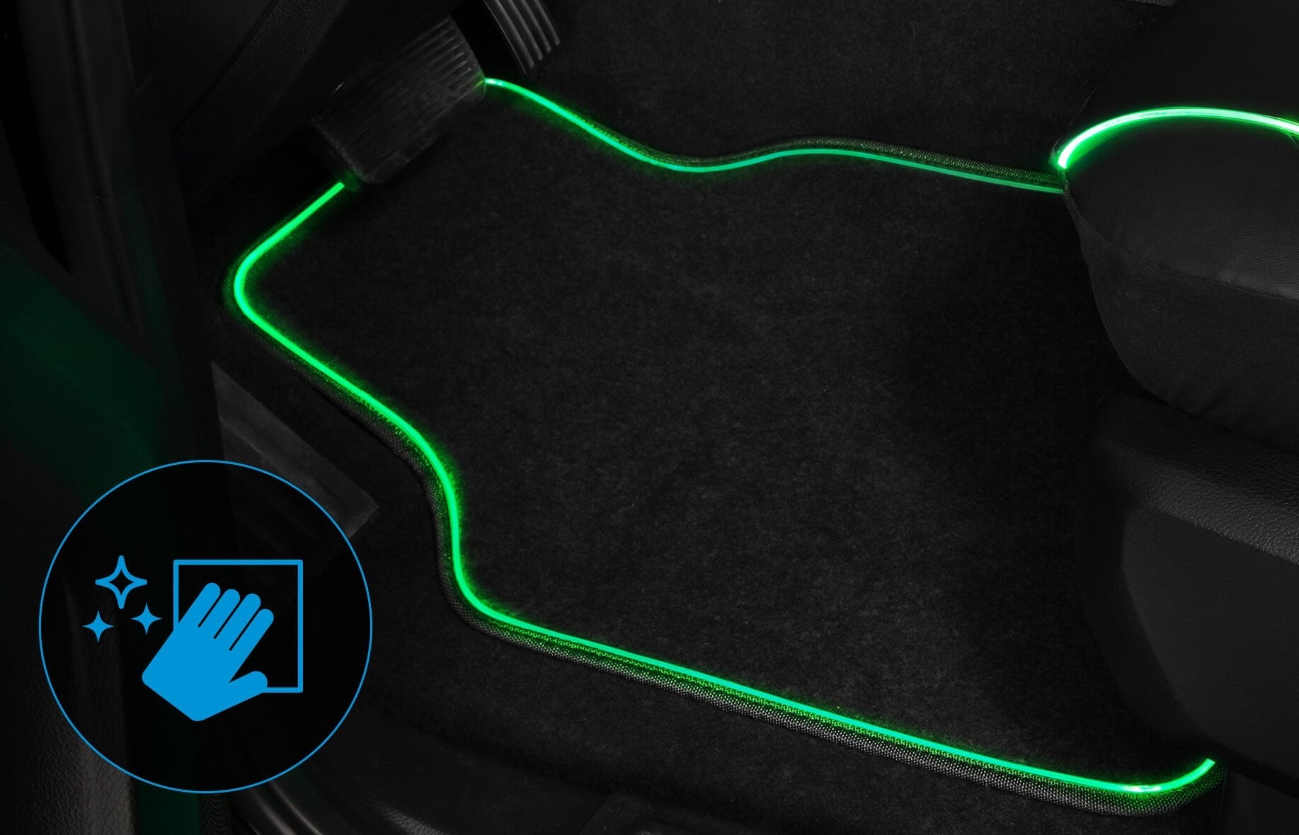 Elevate your car's interior even further by adding our LED seat cover (sold separately). Creating a cooly coordinated look in your vehicle that is sure to impress. Like our floor mats, the seat covers are water and spill-resistant, ensuring your interior is protected while remaining stylish