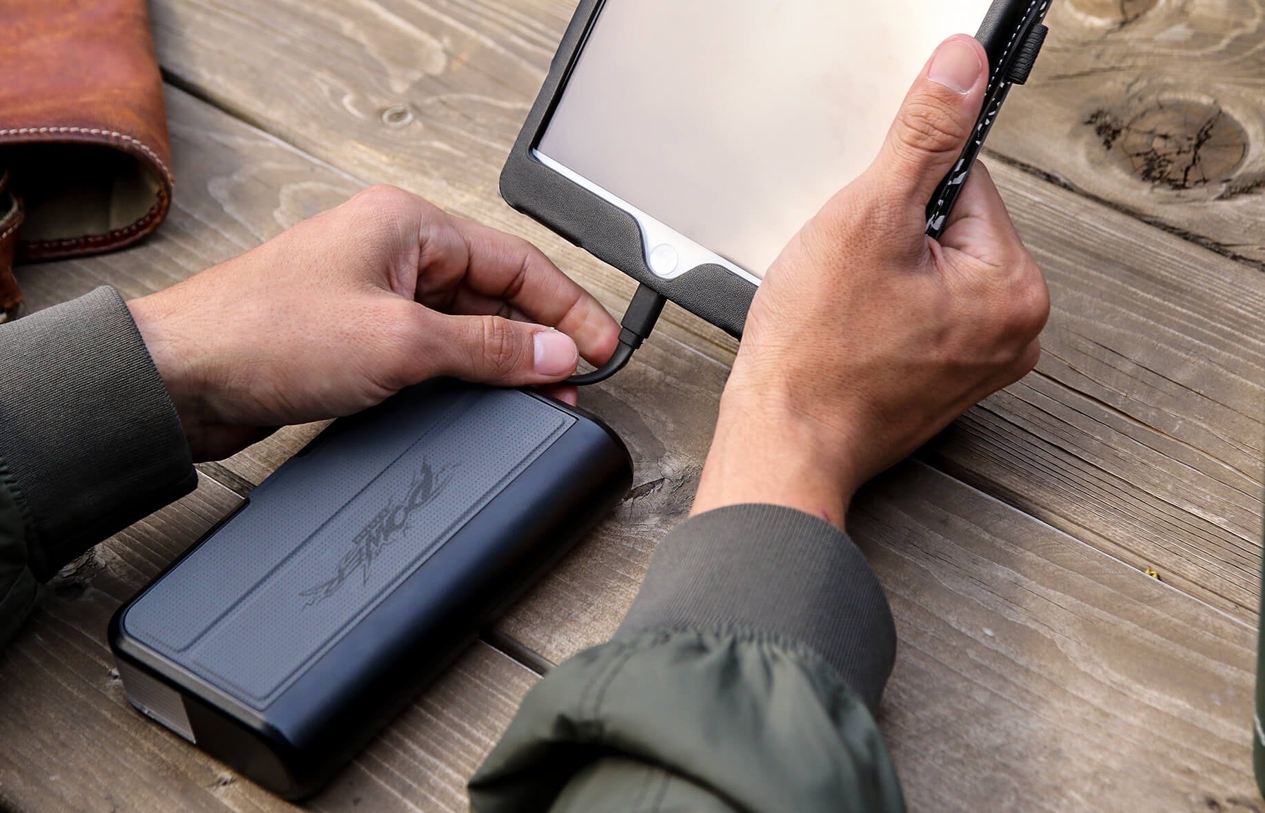 Forget your phone's charging cable? No worries. A Mfi-certified lighting charging cable is conveniently stored under the top flap of the power bank.