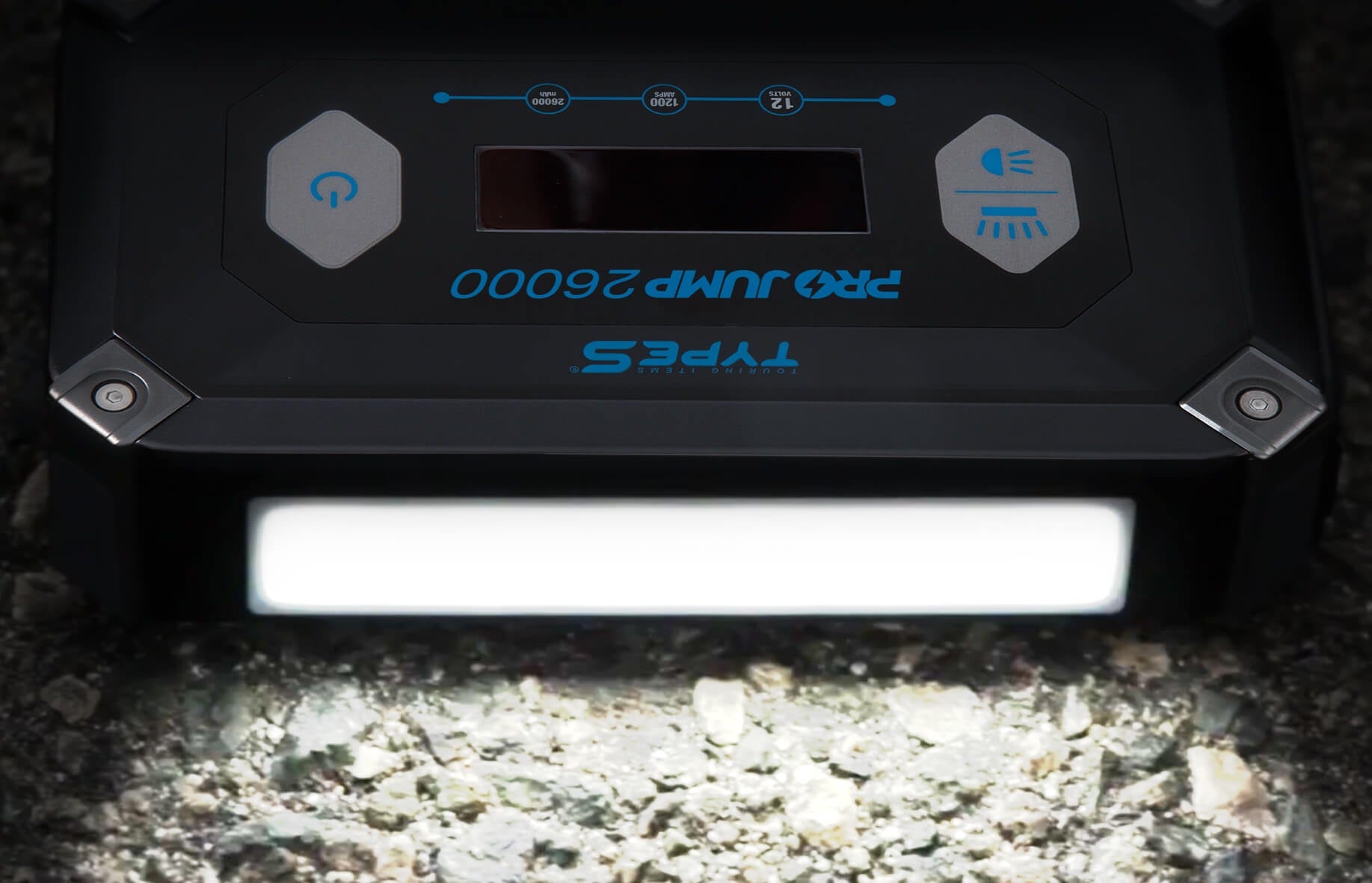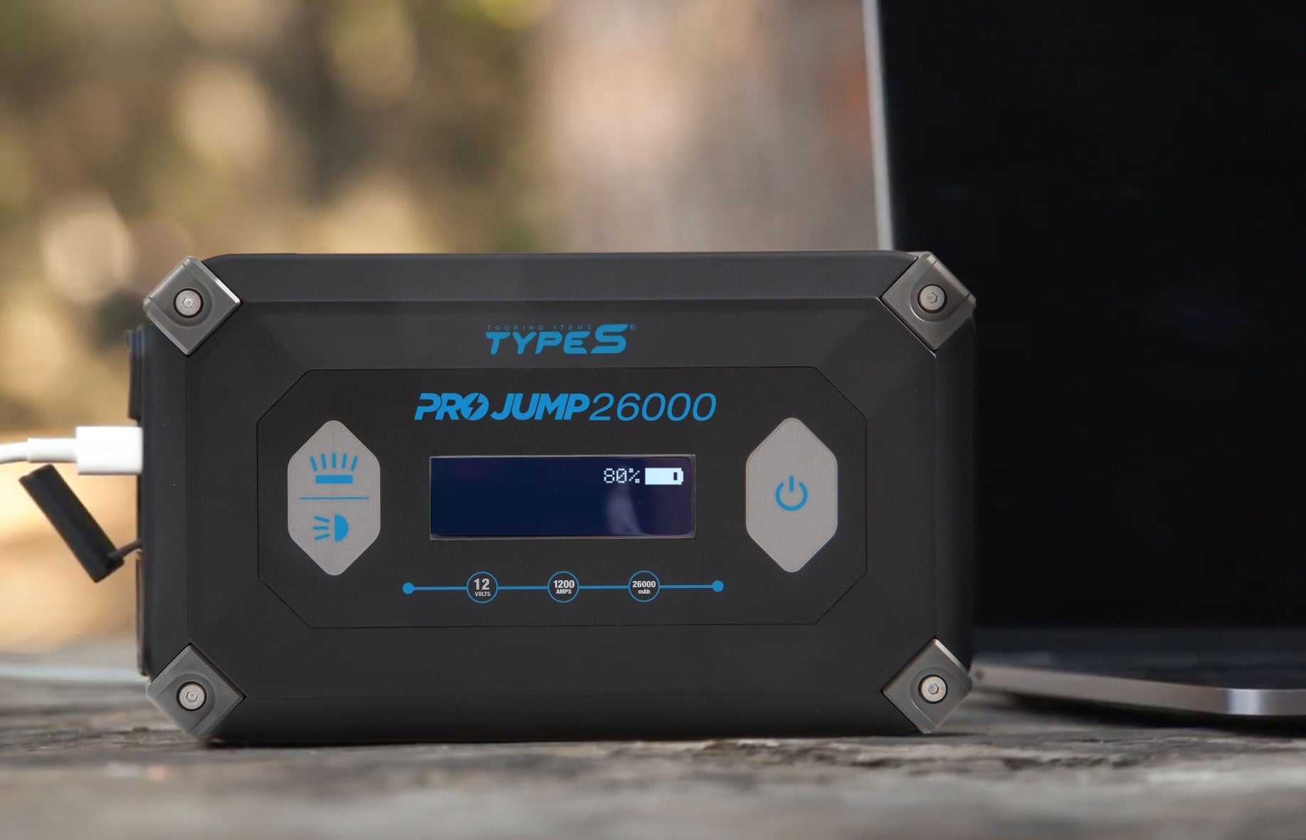 The TYPE S 12V 9.0L 26,000 Dynamic PRO Jump Starter is a jump-starting machine. Equipped with a powerful 26,000 mAh lithium-ion battery, this portable jump box will get your car, truck, or SUV back on the road in no time. Jump-starting a dead battery has never been safer with our proprietary Smart Circuit design, which includes a host of built-in protections to keep you and your vehicle safe. Dynamic Pro PJ26 is also equipped with powerful LEDs that project flood, spot, strobe, and emergency Morse Code light options if in distress. Conveniently fast-charge two USB-A devices and USB-C powered devices & laptops on the go.