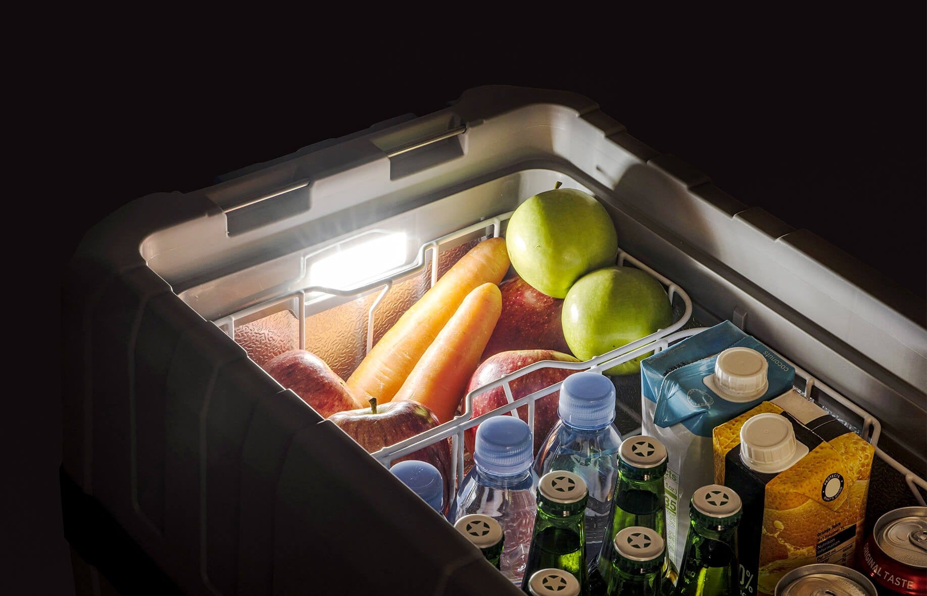 Avoid juggling for food and beverages in the dark with a built-in interior light so you can quickly find what you need.