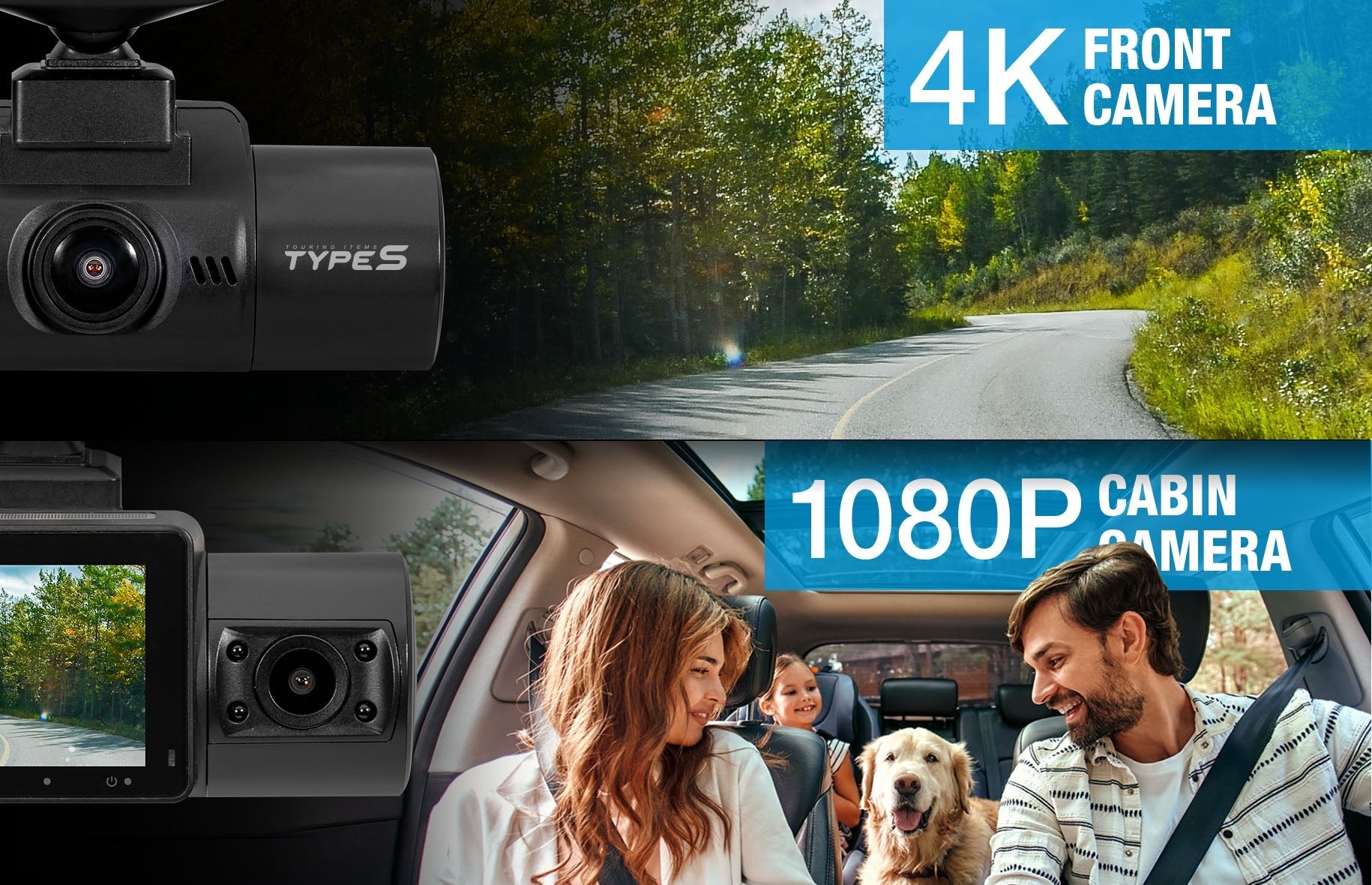 TYPE S S402 Ultra HD 4K Dual View Dashcam with FHD Cabin View Cam