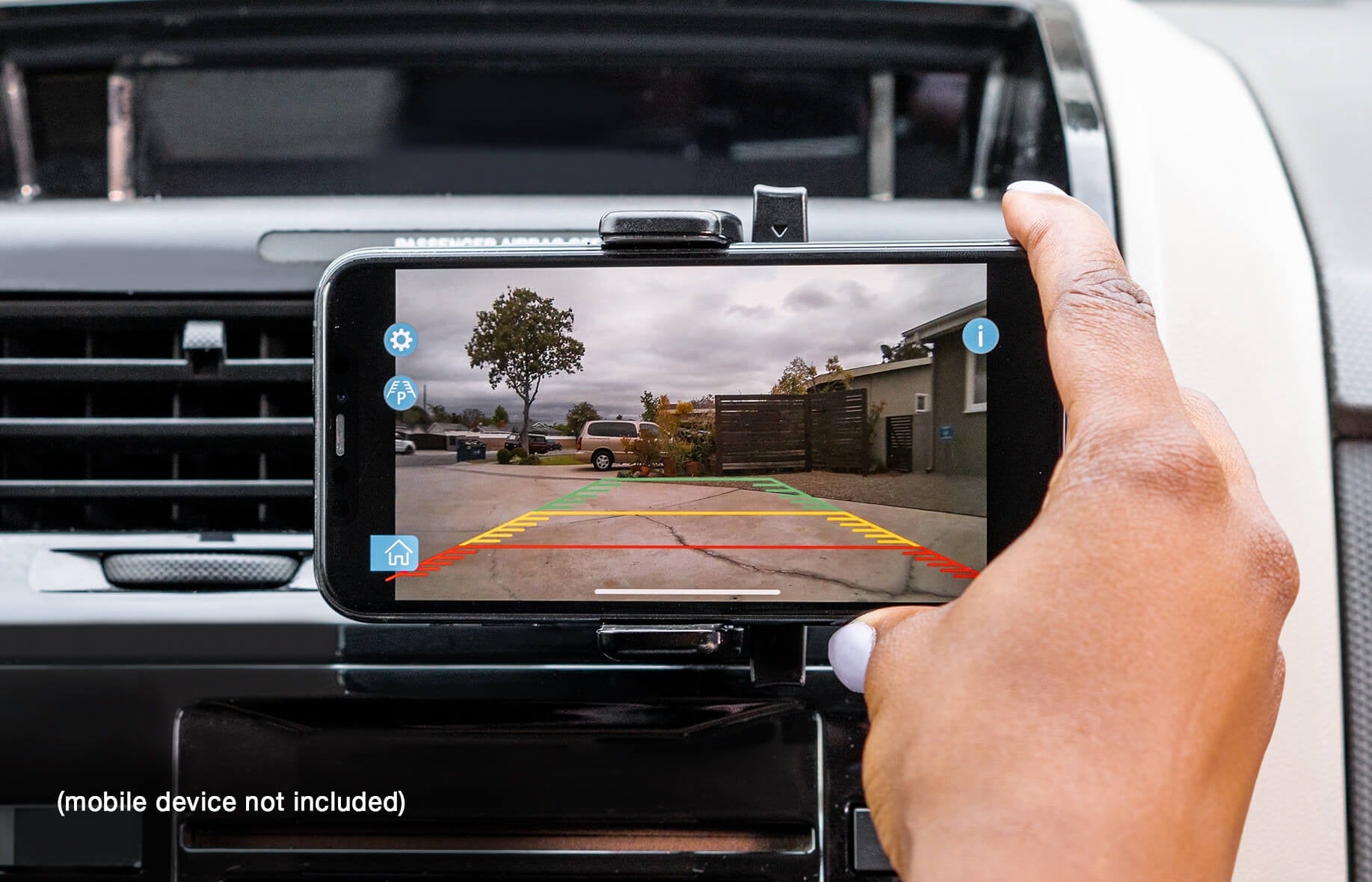 Replace the bulky dashboard monitor and power cables with your smartphone and the TYPE S Drive app to conveniently access and control your backup camera.