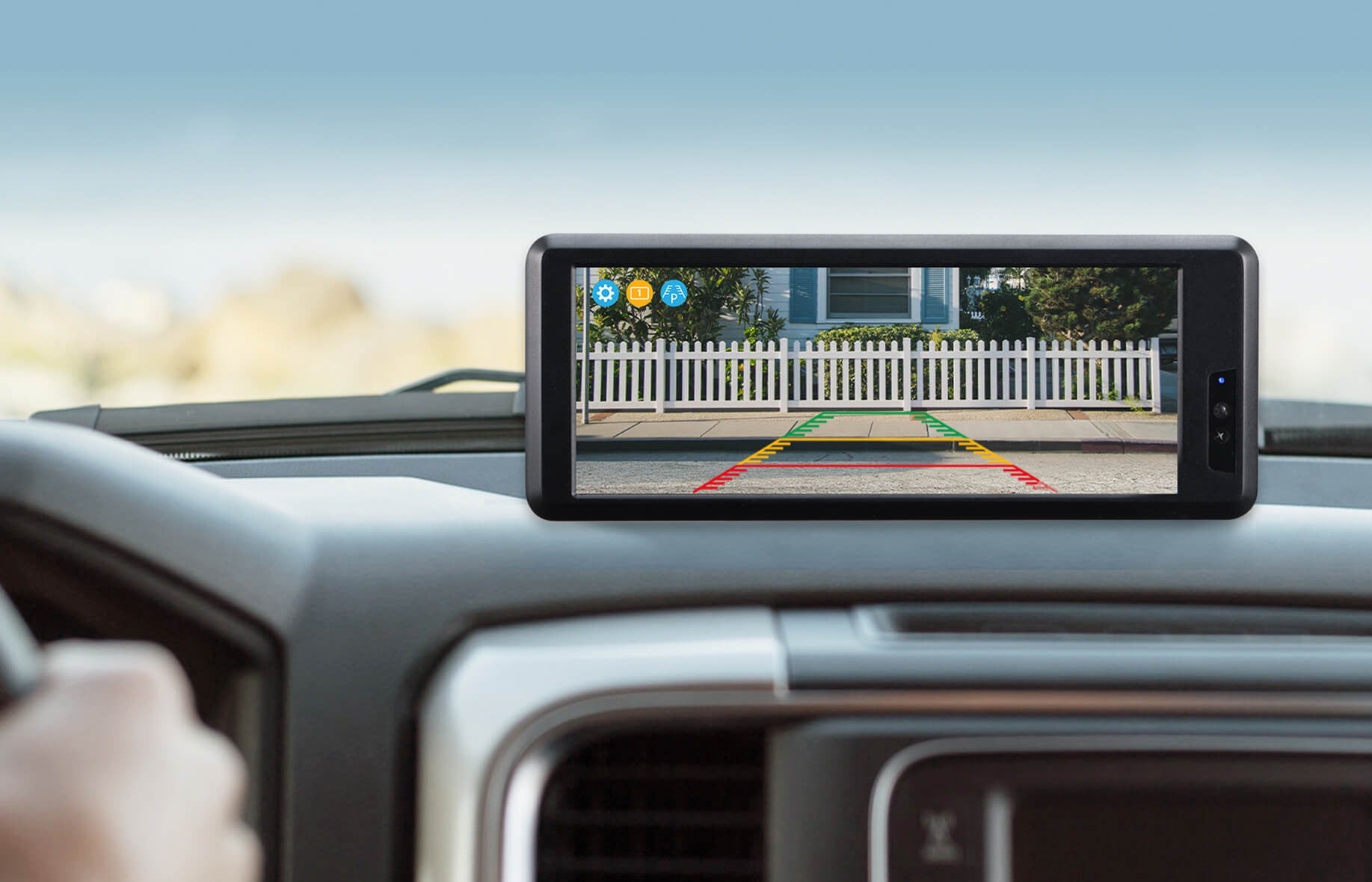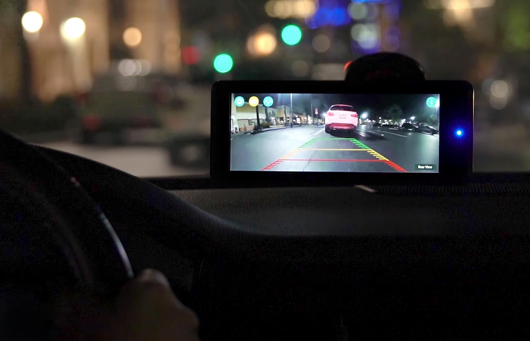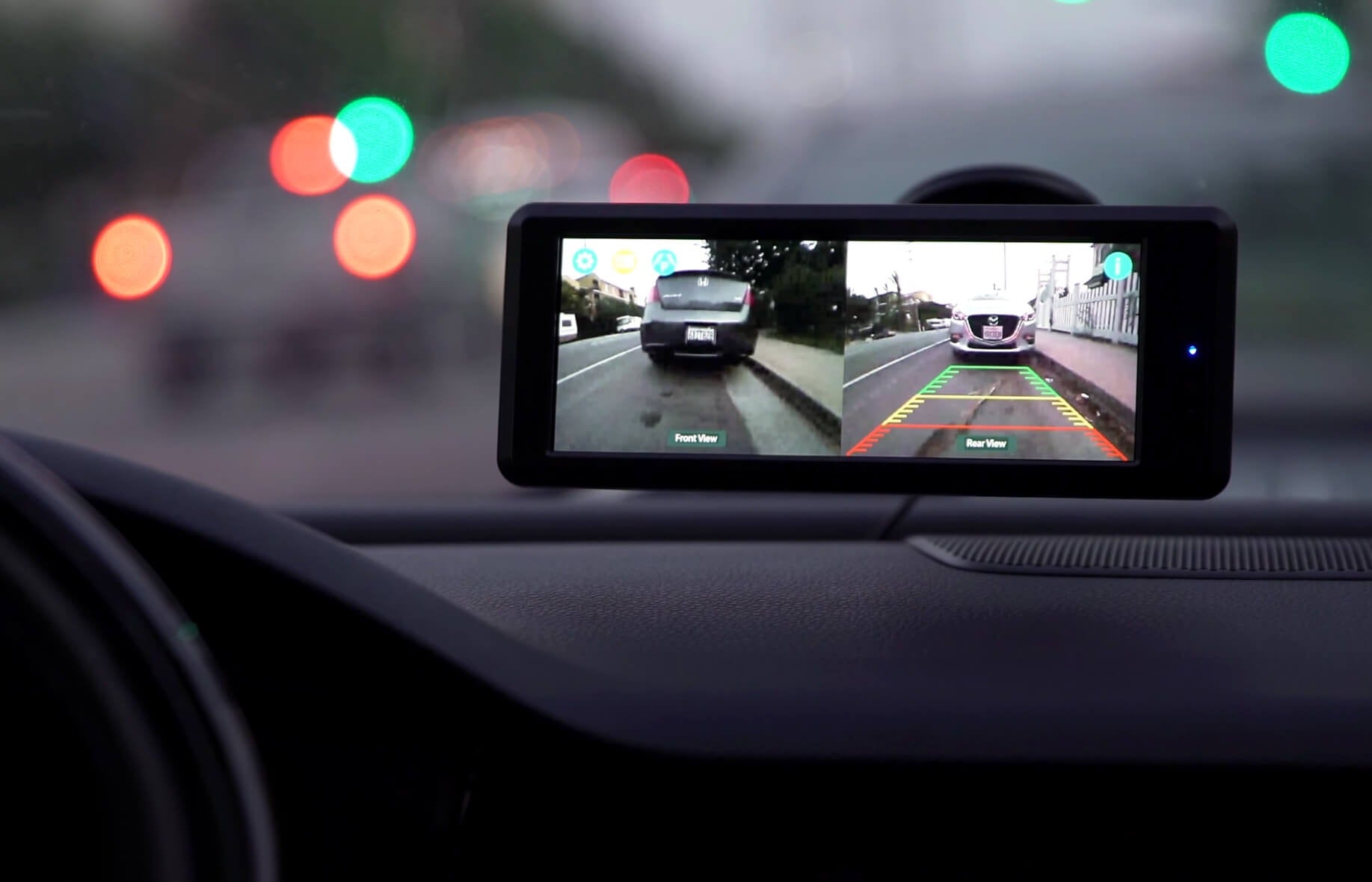 Enjoy a 6.8" HD monitor with touch-screen control, motion-activated startup, and split screen mode when adding a second camera to your front license plate.