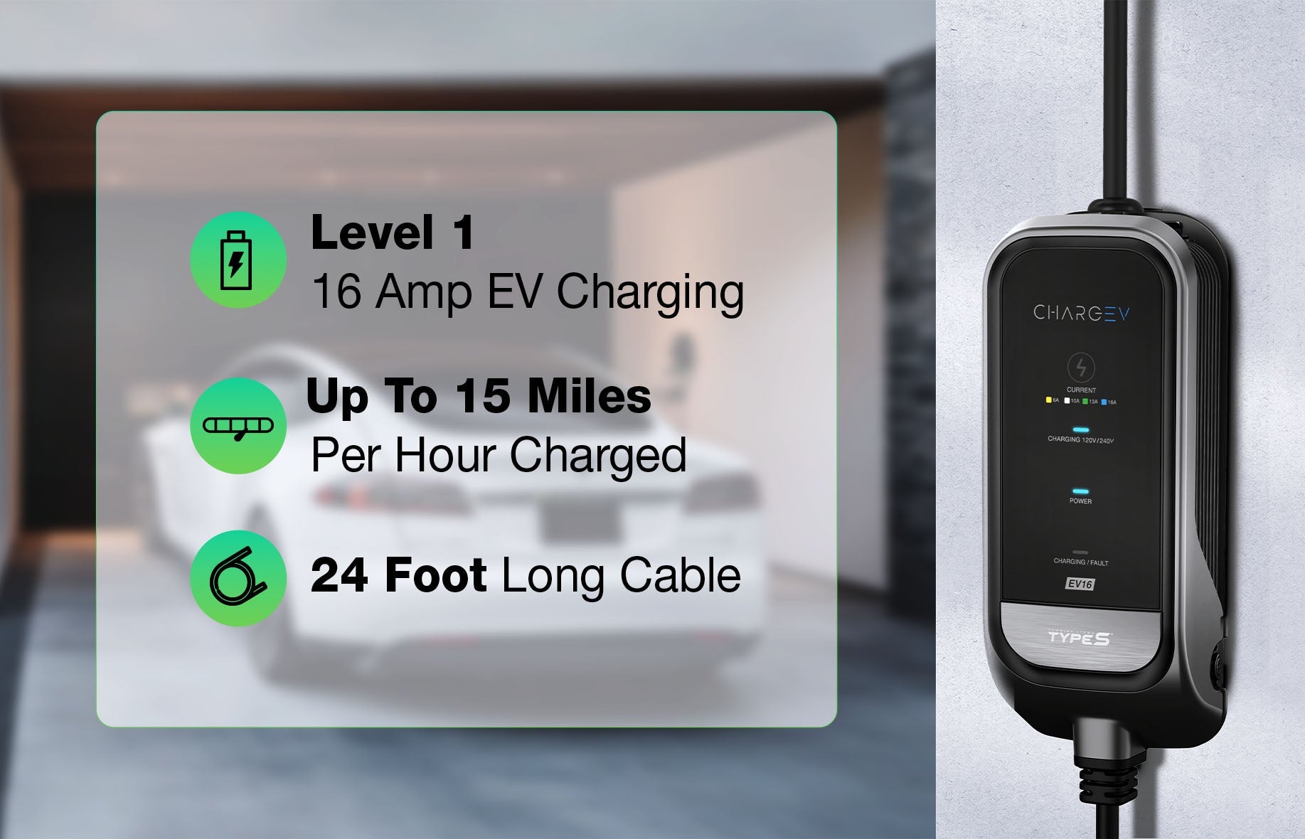CHARGEEV 16A Level 1 Charger, Compatible with All EV Models